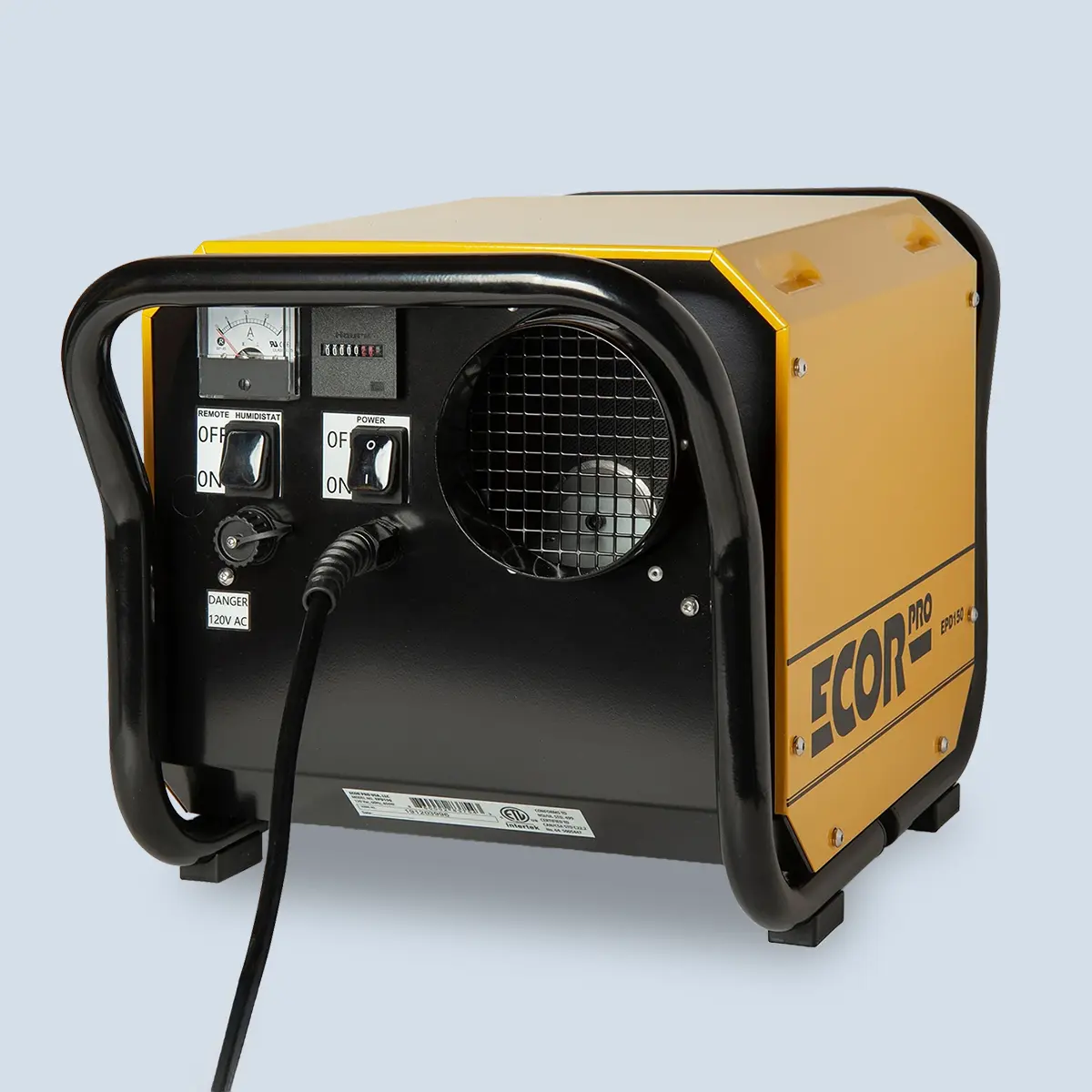 - Install it Anywhere: The Ecor Pro EPD150 was designed to work upside down, on its side, mounted to a wall or ceiling, or used as a freestanding unit on the ground. A replaceable 15-foot power cord is included with purchase.