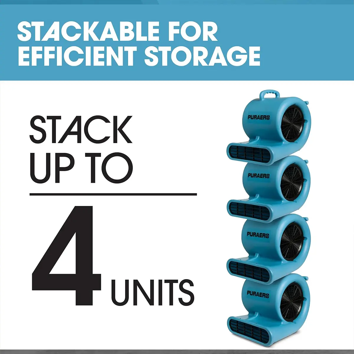 Easily stack up to four of these powerful air movers onto a truck or van and take them to any number of job sites for fast, concentrated drying.
