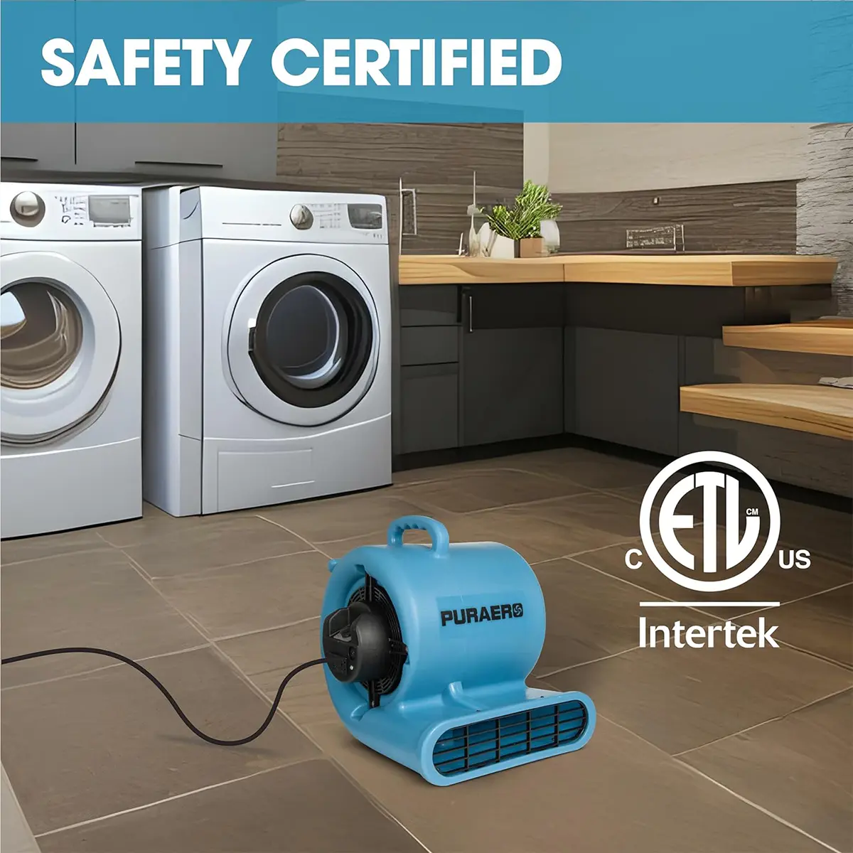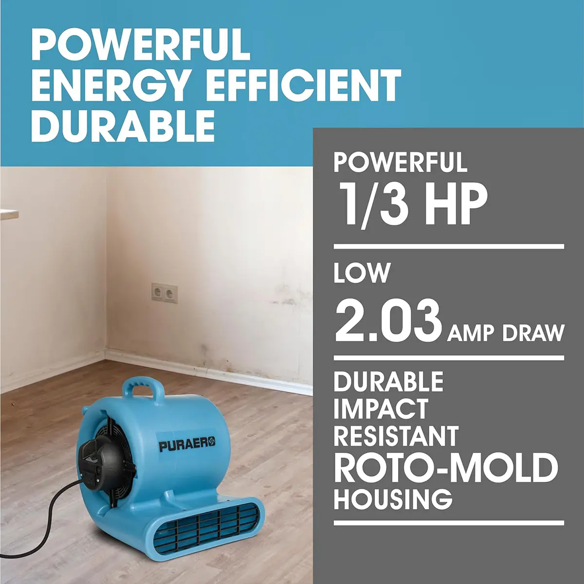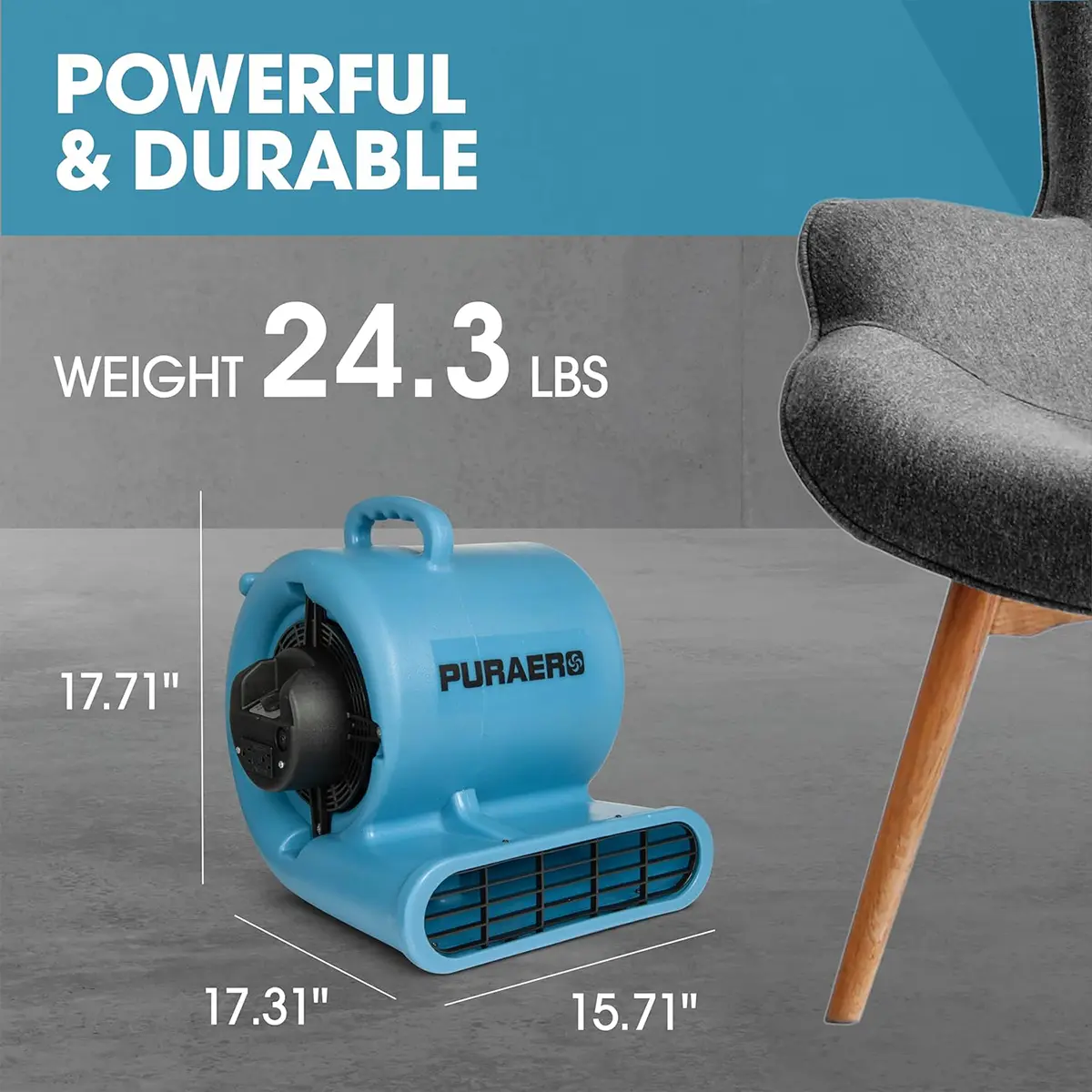 PURAERO Air Mover Carpet Dryer Blowing Floor Fan 1/3 HP 2,550 CFM