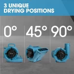 - At 45-degree Angle: Perfect for fast drying of wall board and paint on construction sites, as well as water damage removal.