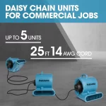 It also features two on-board GFCI outlets for daisy-chaining up to three units together for larger water damage restoration projects. The 25-foot power cord makes positioning these air movers easy.