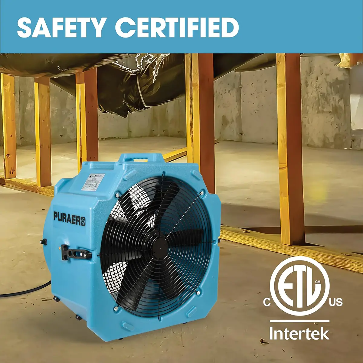 PURAERO Axial Fan, Air Mover, Blower Floor Fan – 1/4 HP, 4000 CFM, 2.7 Amps
